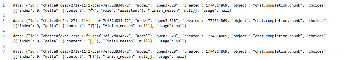 data: {"id":"...","object":"chat.completion.chunk","created":...,"model":"qwen3-32B","choices":[{"index":0,"delta":{"content":"泉城"},"finish_reason":null}]}
