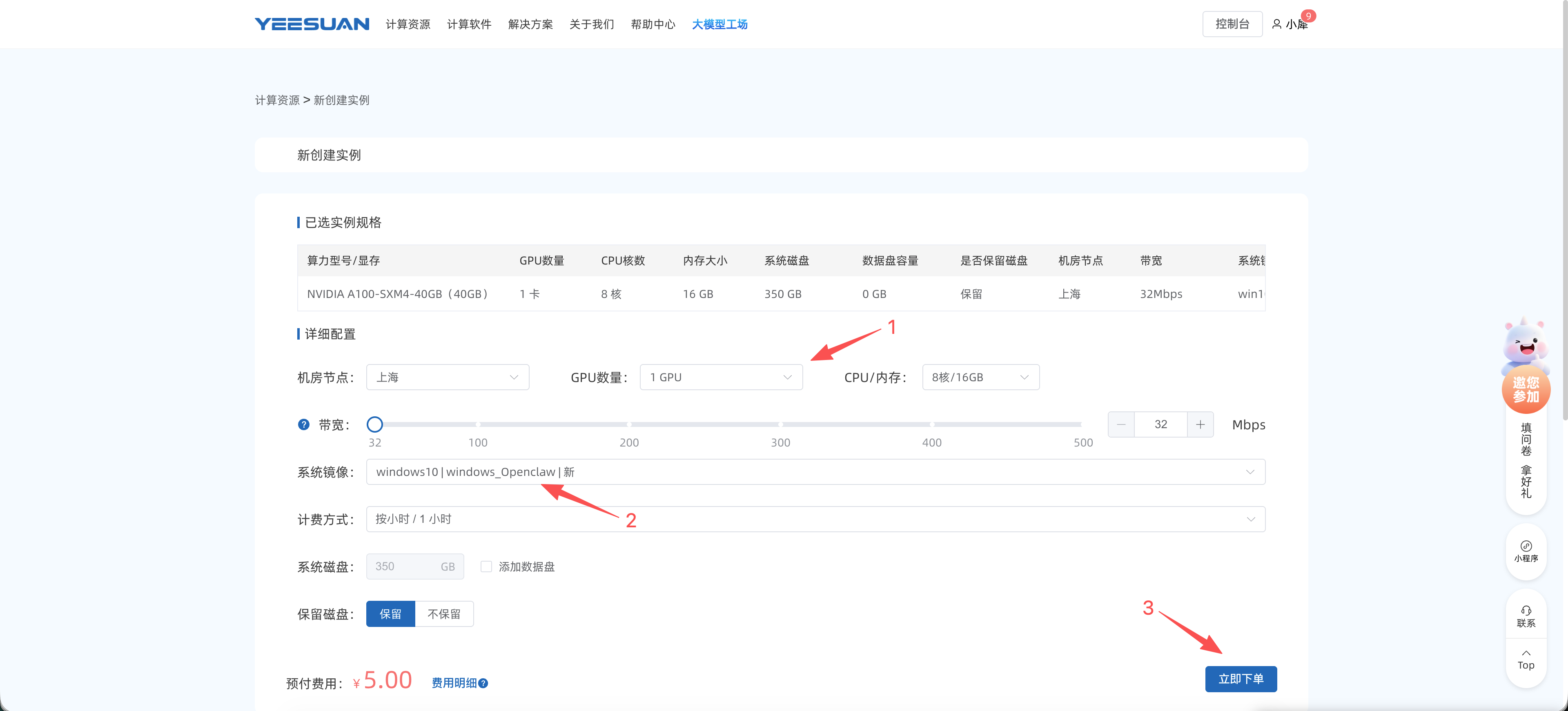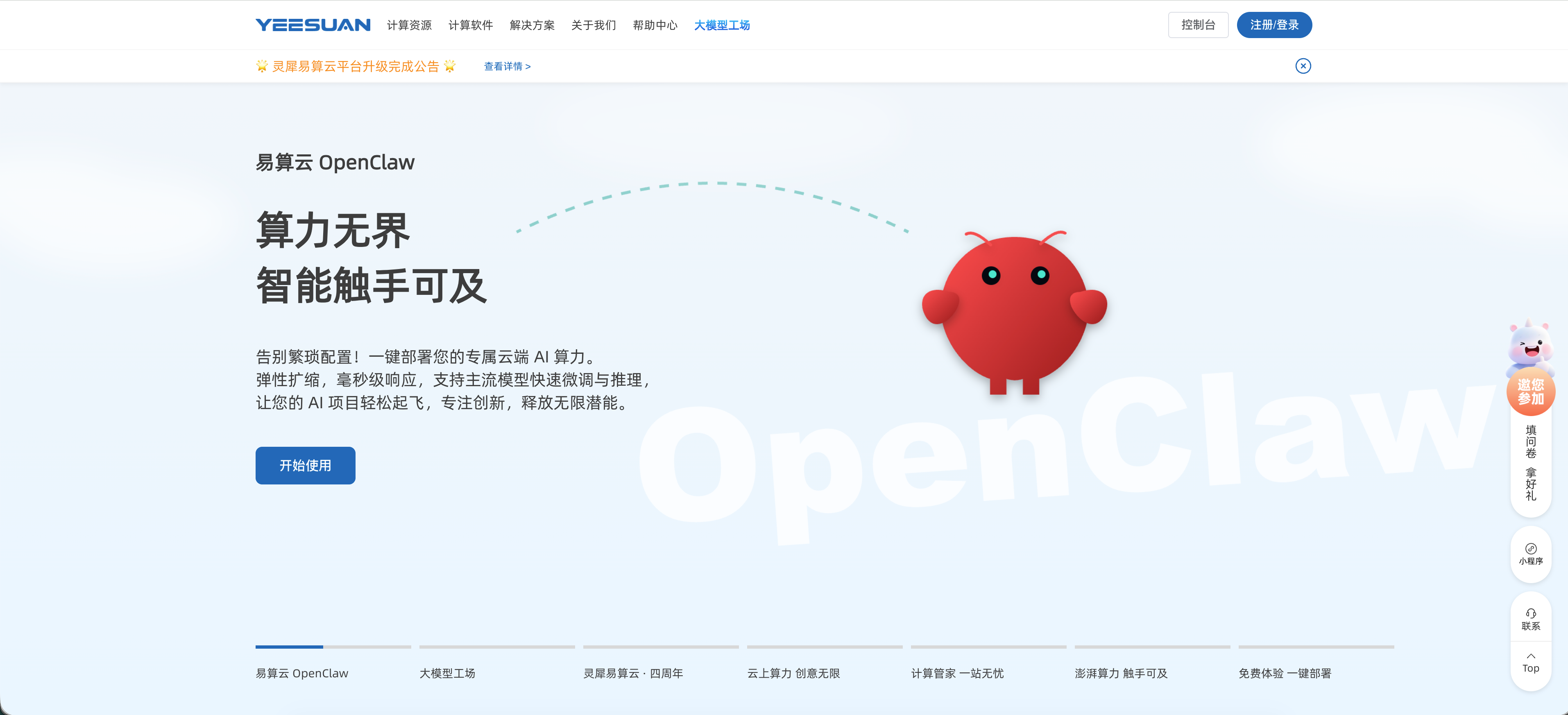 登录易算云平台,找到 OpenClaw 应用入口。