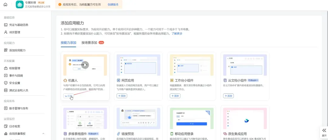 4. 然后再去添加应用能力