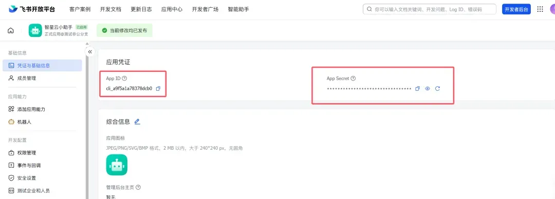 9. 最后复制应用凭证