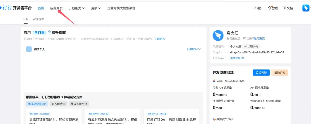 2. 选择完组织,后点击“应用开发”