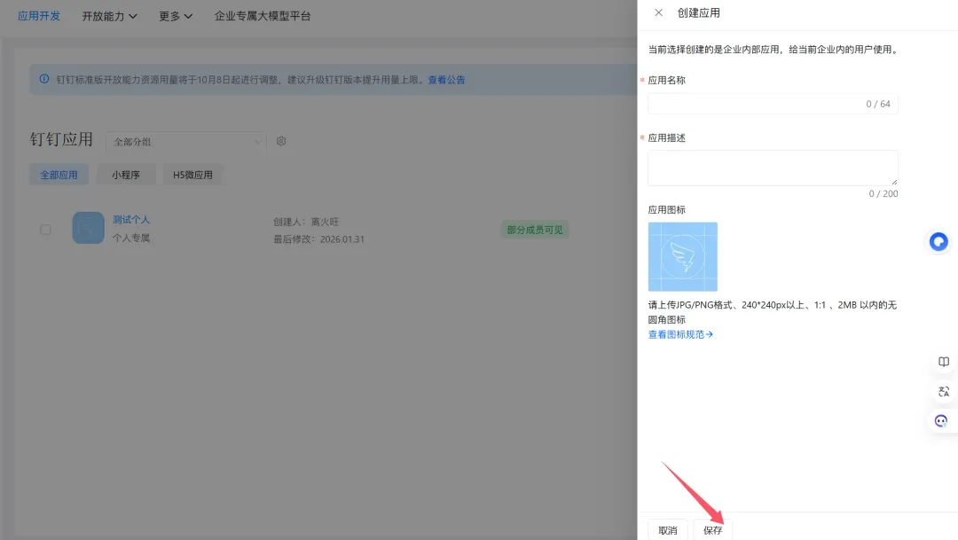 1. 创建企业自建应用