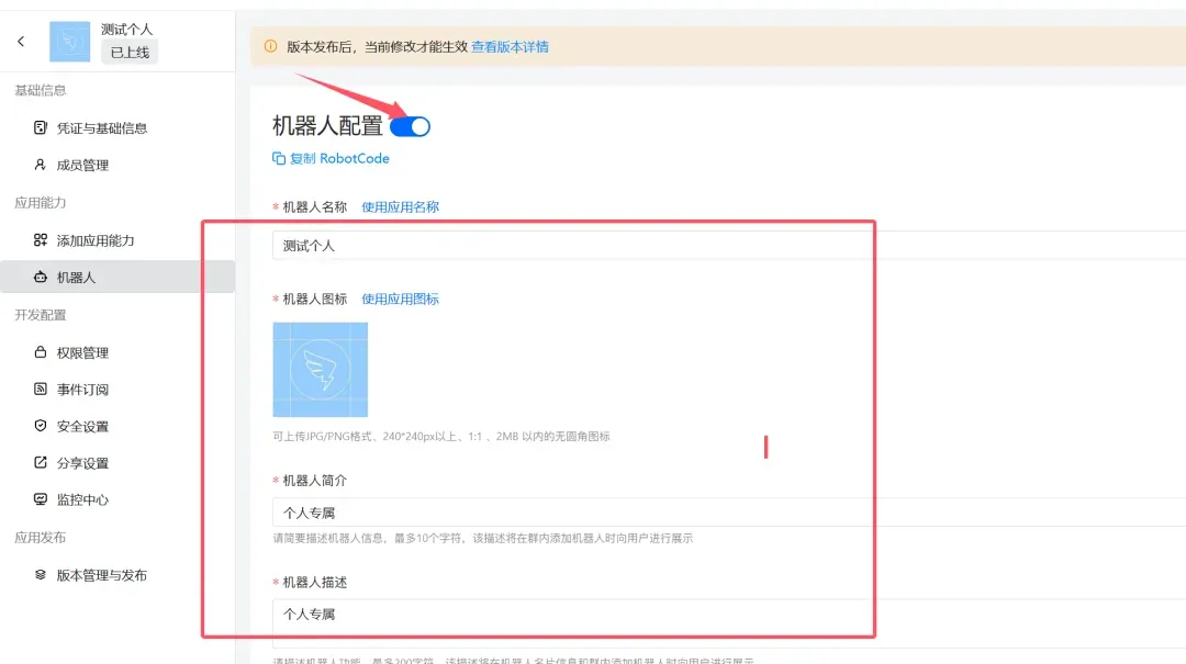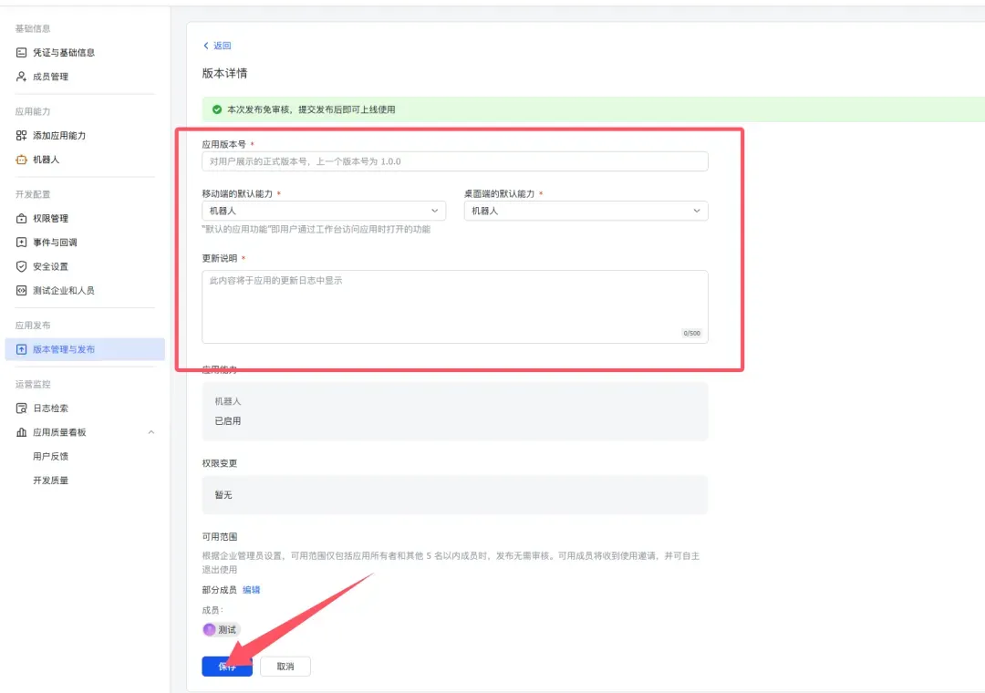 7. 完成后点击版本管理与发布,进行创建版本