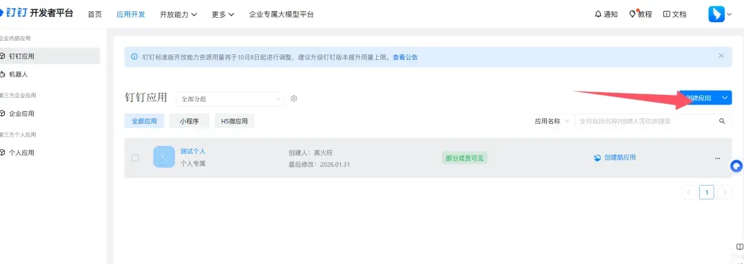 1. 创建企业自建应用
