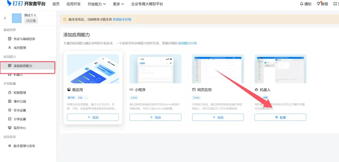 4. 然后再去添加应用能力