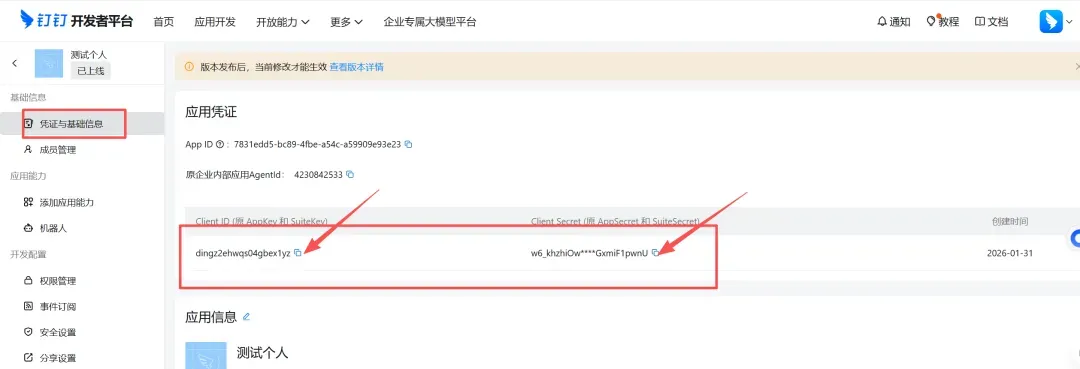 9. 最后复制应用凭证