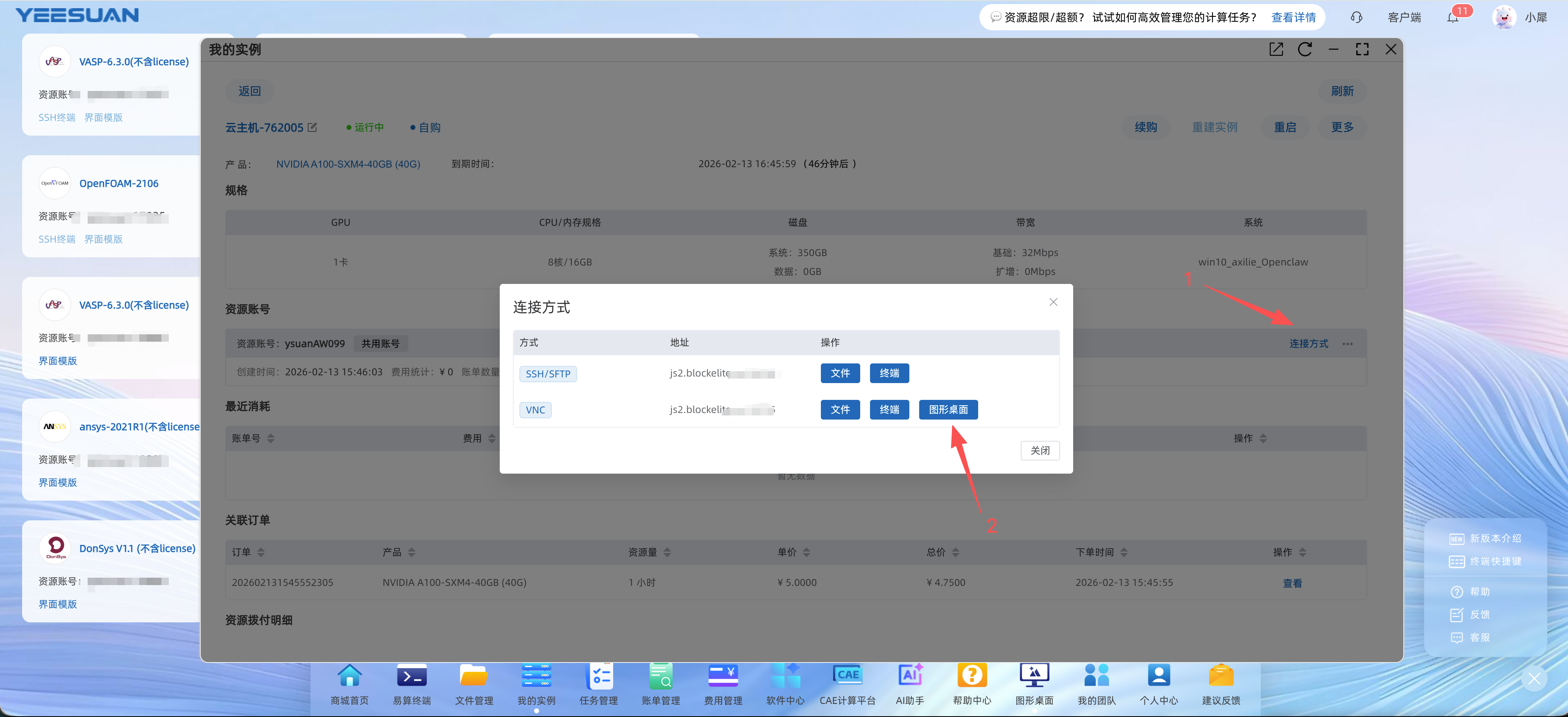 使用图形界面登录到实例中